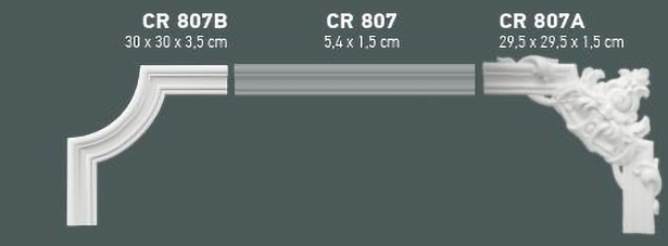 Poate fi utilizat atat ca brau ornamental cat si pentru realizarea de ancadramente (cadrane) impreuna cu coltarul CR807A si/sau CR807B