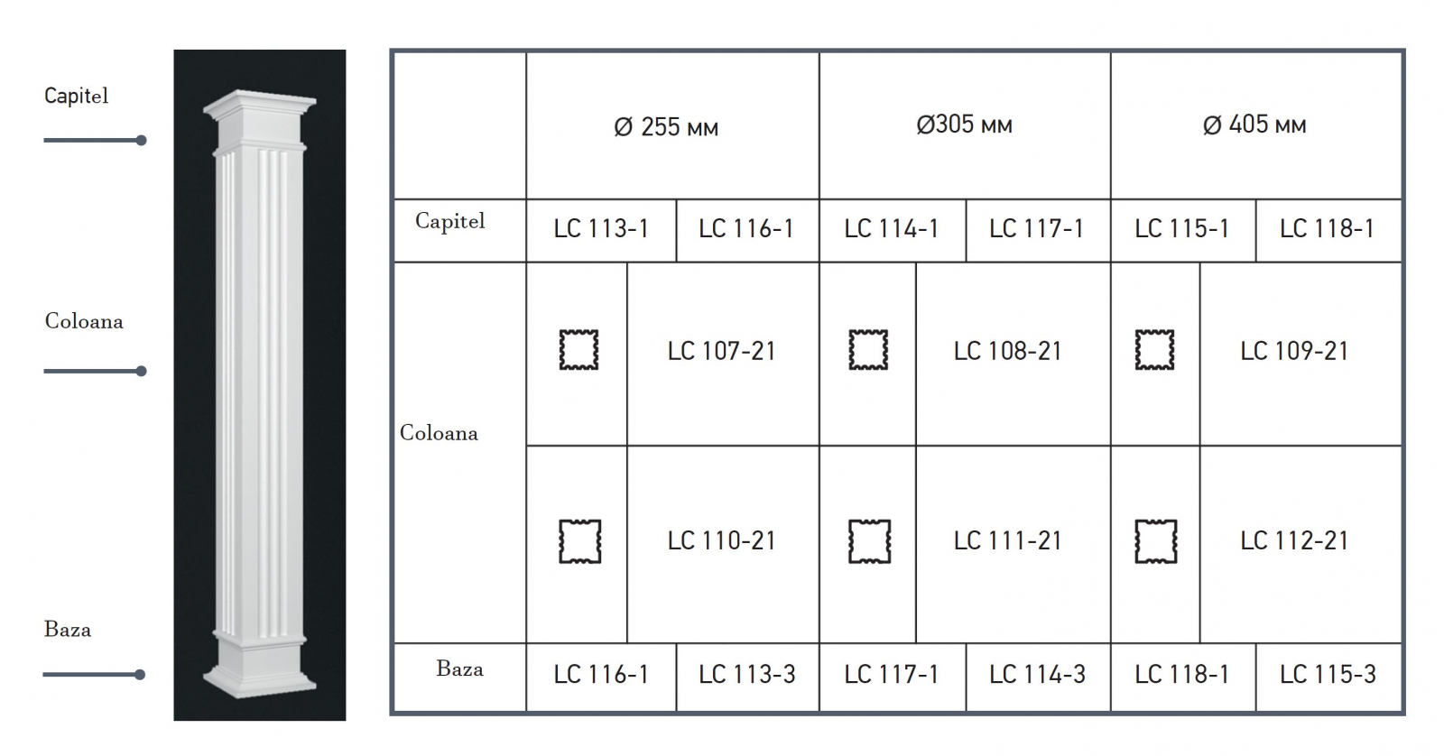 Capitel pentru coloana, LC 113-1F, 38cm x 38cm, inaltime 13cm
