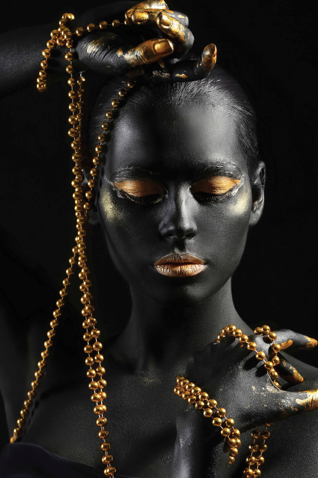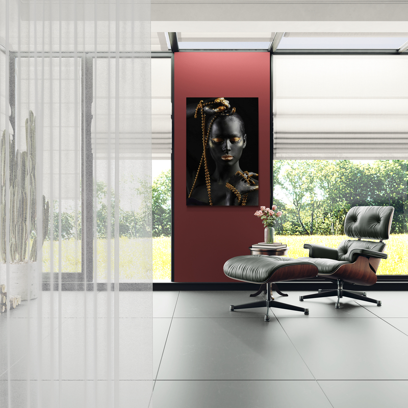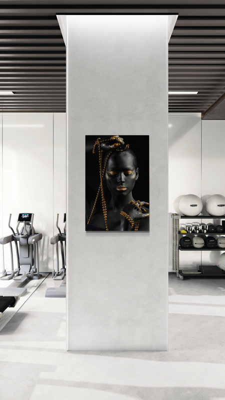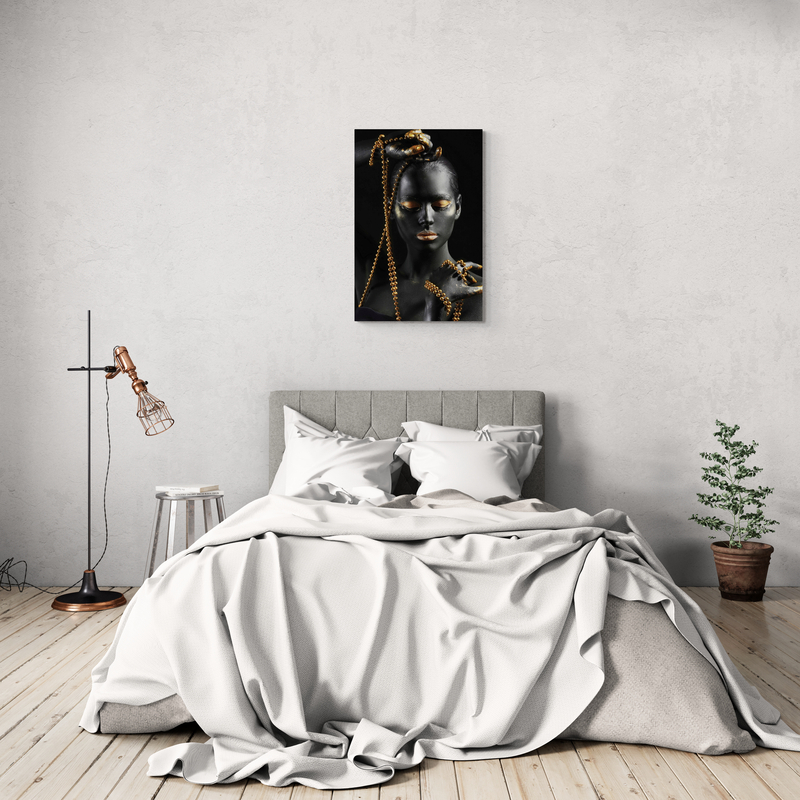 Lanțuri aurii învăluie o figură misterioasă, sugerând secrete și libertate restrânsă. O piesă de artă ce provoacă reflecție, ideală pentru iubitorii de mister