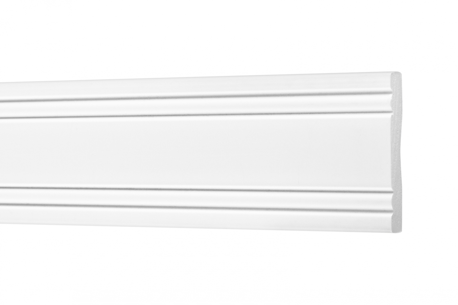 Profilele premium din Ecopolimer oferă o finisare perfectă a pereților. Formula inovatoare, cu densitate foarte mare, face ca aceste profile să fie nu doar prietenoase cu mediul, ci și mult mai dure și mai rezistente la impact decât produsele convenționale. Datorită plastifianților biologici, profilele decorative își păstrează flexibilitatea, în ciuda rezistenței ridicate la impact, și se adaptează chiar și suprafețelor ușor denivelate. Tranzițiile inegale ale tapetului, denivelările sau cablurile pot fi mascate discret, obținându-se o soluție armonioasă pentru suprafețele pereților. Datorită gamei variate de modele și posibilității de vopsire personalizată, profilele pot fi adaptate în funcție de preferințele tale. În ciuda durității similare lemnului, cornișele sunt foarte ușor de tăiat și prelucrat. Sunt recomandate chiar și începătorilor, datorită greutății reduse și montajului simplu.