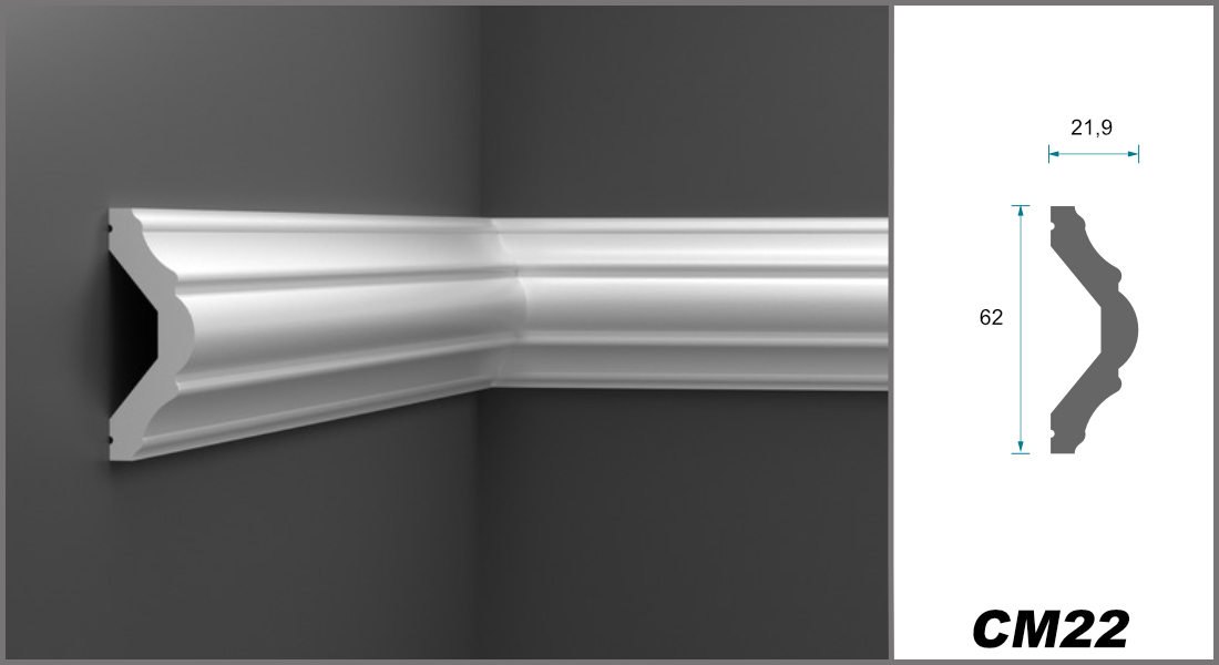 Profilele premium din Ecopolimer oferă o finisare perfectă a pereților. Formula inovatoare,  cu densitate foarte mare, face ca aceste profile să fie nu doar prietenoase cu mediul, ci și mult mai dure și mai rezistente la impact decât produsele convenționale. Datorită plastifianților biologici, profilele decorative își păstrează flexibilitatea, în ciuda rezistenței ridicate la impact, și se adaptează chiar și suprafețelor ușor denivelate. Tranzițiile inegale ale tapetului, denivelările sau cablurile pot fi mascate discret, obținându-se o soluție armonioasă pentru suprafețele pereților. Datorită gamei variate de modele și posibilității de vopsire personalizată, profilele pot fi adaptate în funcție de preferințele tale. În ciuda durității similare lemnului, cornișele sunt foarte ușor de tăiat și prelucrat. Sunt recomandate chiar și începătorilor, datorită greutății reduse și montajului simplu.