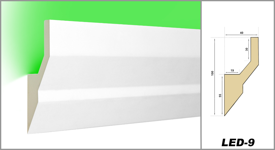 Profilele noastre LED opace din poliuretan ofera un finisaj perfect al peretelui cu iluminare indirecta. Datorita materialului de tip gips – poliuretanul – profilul LED nu este doar rezistent la socuri, ci si la mucegai si umiditate, fiind potrivit pentru montaj in bai sau zone de wellness. Denivelarile pot fi mascate cu usurinta, iar inaltimea tavanului poate fi perceputa vizual ca fiind mai mare. Prin iluminarea indirecta poti crea un punct focal spectaculos pentru mobilierul sau obiectele decorative din incapere. Profilele LED pot fi personalizate prin vopsire in functie de preferinte. In ciuda duritatii similare lemnului, sunt foarte usor de taiat si prelucrat. Datorita greutatii reduse si montajului simplu, produsul este recomandat chiar si celor fara experienta.