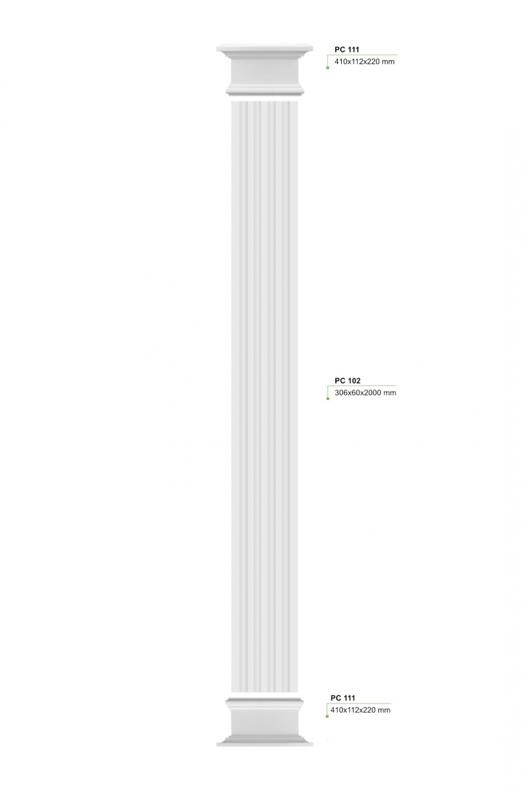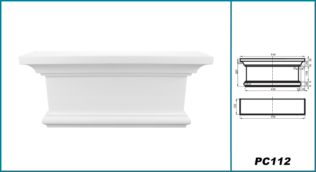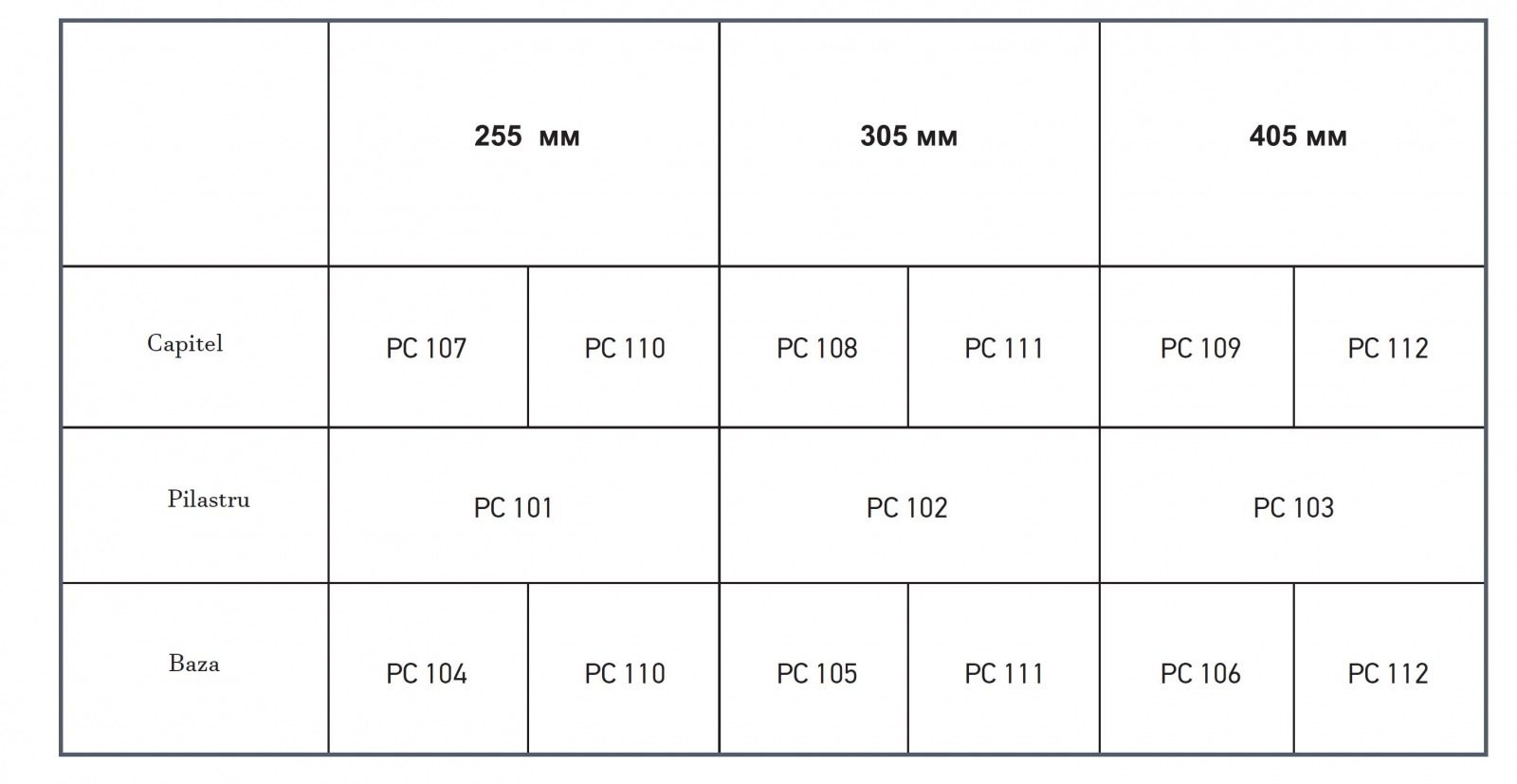 Se poate utiliza cu rol de capitel sau de baza impreuna cu pilastrul PC 102