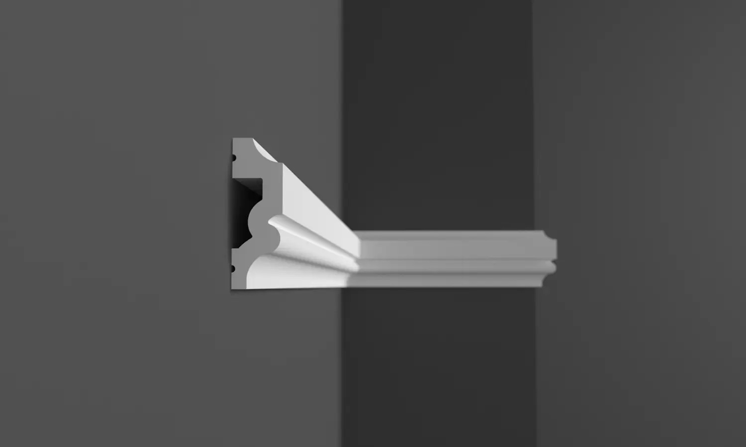 Profile decorative realizate din polimeri cu inalta densitate , de o calitate ridicata si rezistenta crescuta. - rezistente la socuri si lovituri ; - usor de instalat ; - rezistente la umezeala ; - usor de vopsit ; - nu apare efectul de imbatranire in timp.