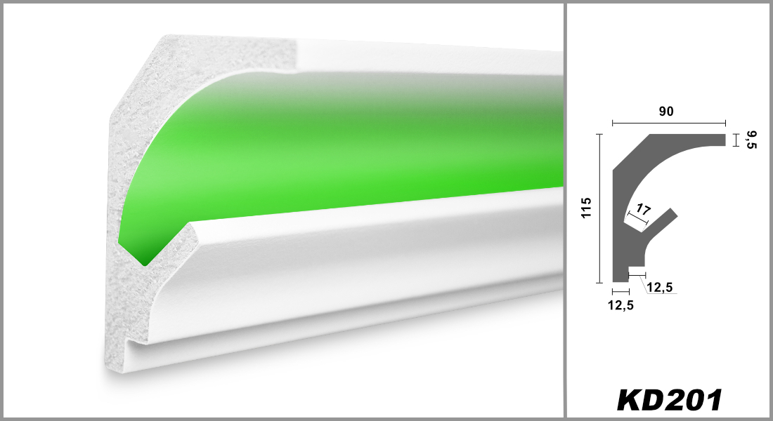 Elementele decorative TESORI D sunt realizate din spuma de polistiren extrudat și acoperite cu un strat protector pe baza de polimeri acrilici cu adaos de aschii de marmura si nisip de cuart. Grosimea stratului de acoperire de protectie nu este mai mare de 1 mm, ceea ce va permite sa creati profile liniare foarte durabile, dar in acelasi timp ultra-usoare, cu rezistenta la presiune, dar si rezistenta la mucegai si umezeala, ceea ce facilitează utilizarea in baie sau in zona de wellness.