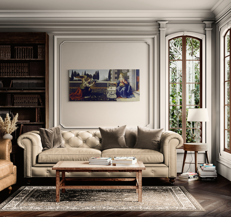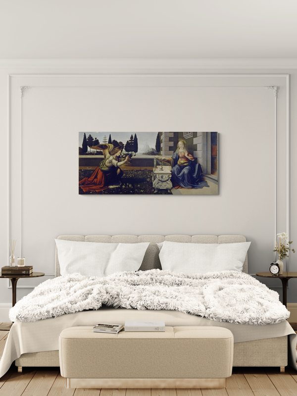Celebrați minunea în Buna Vestire de Leonardo da Vinci, cu îngerul și Fecioara în armonie perfectă.