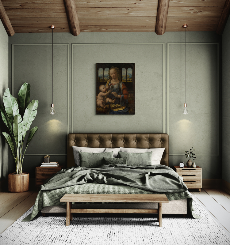 Bucurați-vă de frumusețea florală în Madona cu Garoafa de Leonardo da Vinci, simbol al purității și grației.