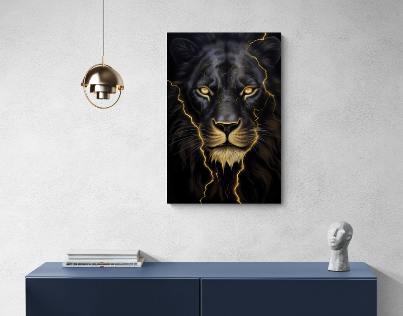 Tablou canvas - Panteră neagră, fulger auriu